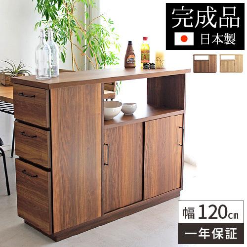 キッチンカウンター おしゃれ 間仕切り 木製 北欧 対面 完成品 1cm キッチン 収納 台 作業台 リビング収納 食器棚 棚 背面化粧仕上げ 大川家具 日本製 26 045 サムライ家具 通販 Yahoo ショッピング
